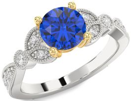 Diamond Blue Sapphire White Yellow Gold Round Vintage Engagement Ring