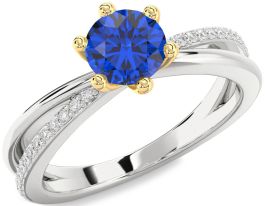 Diamond Blue Sapphire White Yellow Gold Round Solitaire Engagement Ring