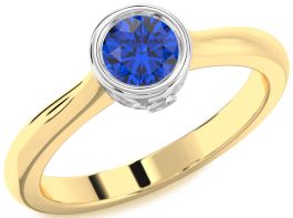 Diamond Blue Sapphire White Yellow Gold Round Solitaire Engagement Ring