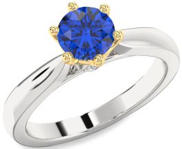 Diamond Blue Sapphire White Yellow Gold Round Solitaire Engagement Ring