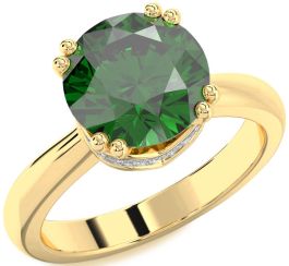 Diamond Emerald Gold Halo Round Solitaire Engagement Ring