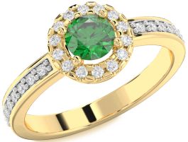 Diamond Emerald Gold Halo Round Pave Engagement Ring