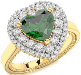 Diamond Emerald Gold Heart Halo Engagement Ring