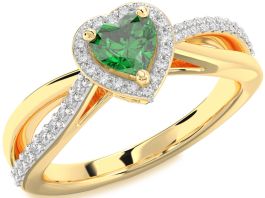 Diamond Emerald Gold Heart Halo Engagement Ring