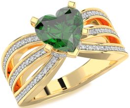 Diamond Emerald Gold Heart Solitaire Pave Engagement Ring