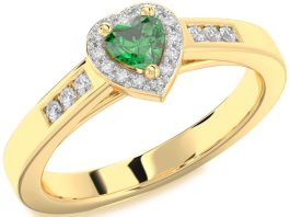 This heart-shaped diamond Promise ring exudes timeless elegance and heartfelt sentiment. A brilliant halo of round diamonds surrounds the center heart-cut stone, amplifying its sparkle. The polished yellow gold band features three accent diamonds on each side, adding symmetry and charm. Perfect for expressing love, it’s a romantic and refined piece for any special moment.
