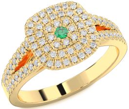 Diamond Emerald Gold Halo Round Pave Promise Ring