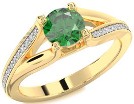 Diamond Emerald Gold Round Solitaire Engagement Ring