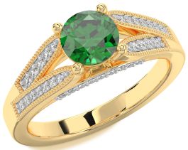 Diamond Emerald Gold Round Vintage Engagement Ring