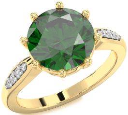 Diamond Emerald Gold Round Solitaire Engagement Ring