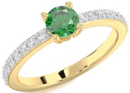 Diamond Emerald Gold Round Solitaire Pave Engagement Ring