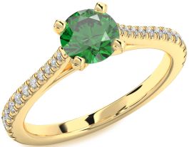 Diamond Emerald Gold Round Solitaire Pave Engagement Ring
