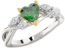 Diamond Emerald Gold Silver Heart Engagement Ring