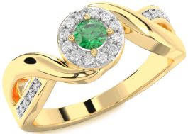 Diamond Emerald Gold Silver Halo Round Promise Ring