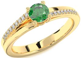 Diamond Emerald Gold Silver Round Solitaire Engagement Ring