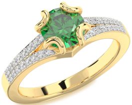 Diamond Emerald Gold Silver Round Solitaire Pave Engagement Ring