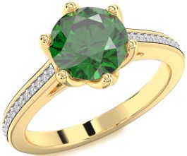 Diamond Emerald Gold Silver Round Solitaire Pave Engagement Ring