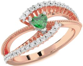 Diamond Emerald Platinum & Rose Gold Heart Promise Ring