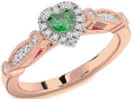 Diamond Emerald Platinum & Rose Gold Heart Promise Ring