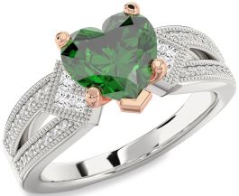 Diamond Emerald Platinum & Rose Gold Heart Vintage Engagement Ring