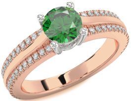 Diamond Emerald Platinum & Rose Gold Round Solitaire Engagement Ring