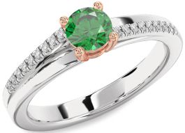 Diamond Emerald Platinum & Rose Gold Round Solitaire Engagement Ring
