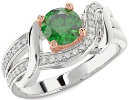 Diamond Emerald Platinum & Rose Gold Round Solitaire Engagement Ring