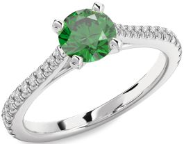 Diamond Emerald Platinum Round Solitaire Pave Engagement Ring
