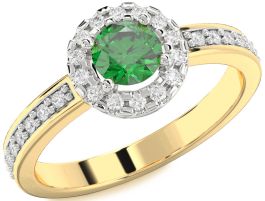 Diamond Emerald Platinum & Yellow Gold Halo Round Pave Engagement Ring
