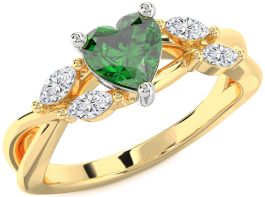 Diamond Emerald Platinum & Yellow Gold Heart Engagement Ring