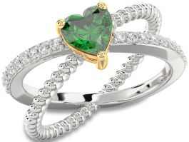 Diamond Emerald Platinum & Yellow Gold Heart Solitaire Pave Engagement Ring