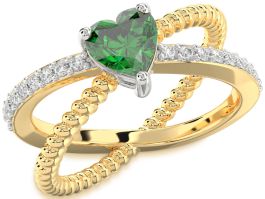 Diamond Emerald Platinum & Yellow Gold Heart Solitaire Pave Engagement Ring