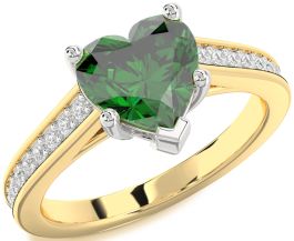 Diamond Emerald Platinum & Yellow Gold Heart Solitaire Pave Engagement Ring