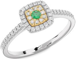 Diamond Emerald Platinum & Yellow Gold Halo Round Pave Promise Ring