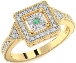Diamond Emerald Platinum & Yellow Gold Halo Round Promise Ring