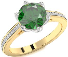 Diamond Emerald Platinum & Yellow Gold Round Solitaire Pave Engagement Ring
