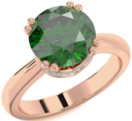 Diamond Emerald Rose Gold Halo Round Solitaire Engagement Ring