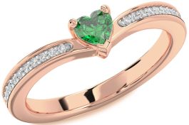 Diamond Emerald Rose Gold Heart Pave Promise Ring