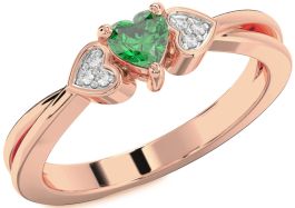 Diamond Emerald Rose Gold Heart Promise Ring