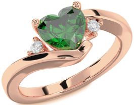 Diamond Emerald Rose Gold Heart Three Stone Engagement Ring
