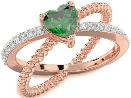 Diamond Emerald Rose Gold Heart Solitaire Pave Engagement Ring