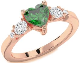 Diamond Emerald Rose Gold Heart Three Stone Engagement Ring
