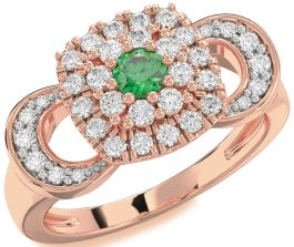 Diamond Emerald Rose Gold Halo Round Promise Ring