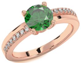 Diamond Emerald Rose Gold Round Solitaire Engagement Ring