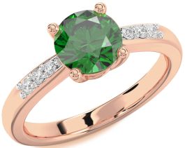 Diamond Emerald Rose Gold Round Solitaire Engagement Ring