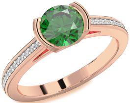 Diamond Emerald Rose Gold Round Solitaire Pave Engagement Ring