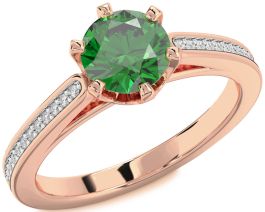 Diamond Emerald Rose Gold Round Solitaire Pave Engagement Ring