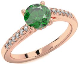 Diamond Emerald Rose Gold Round Solitaire Engagement Ring
