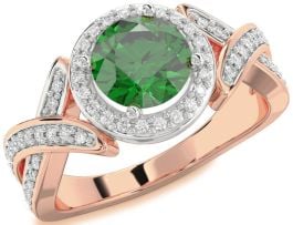 Diamond Emerald Rose Gold Silver Halo Round Pave Engagement Ring