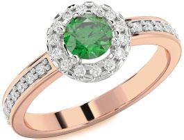 Diamond Emerald Rose Gold Silver Halo Round Pave Engagement Ring